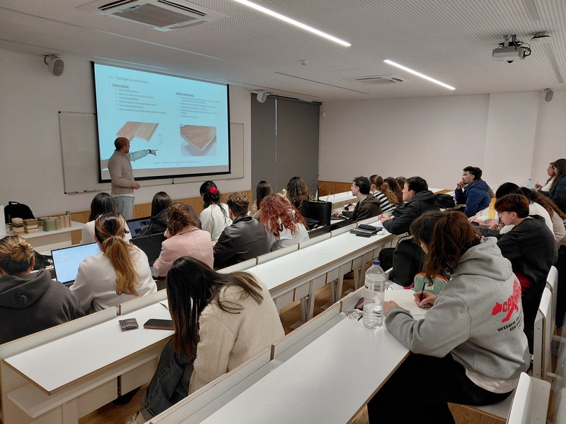 Durante a sessão, foram explorados temas cruciais para a prática arquitetónica, tais como sistemas de acabamentos interiores (aplicações em madeira e derivados, como paredes, pavimentos e lambris); técnicas de fixação (soluções construtivas e as suas viabilidades técnicas); vãos e continuidade visual (a integração funcional dos vãos com os acabamentos previstos, promovendo uma visão transversal do espaço).